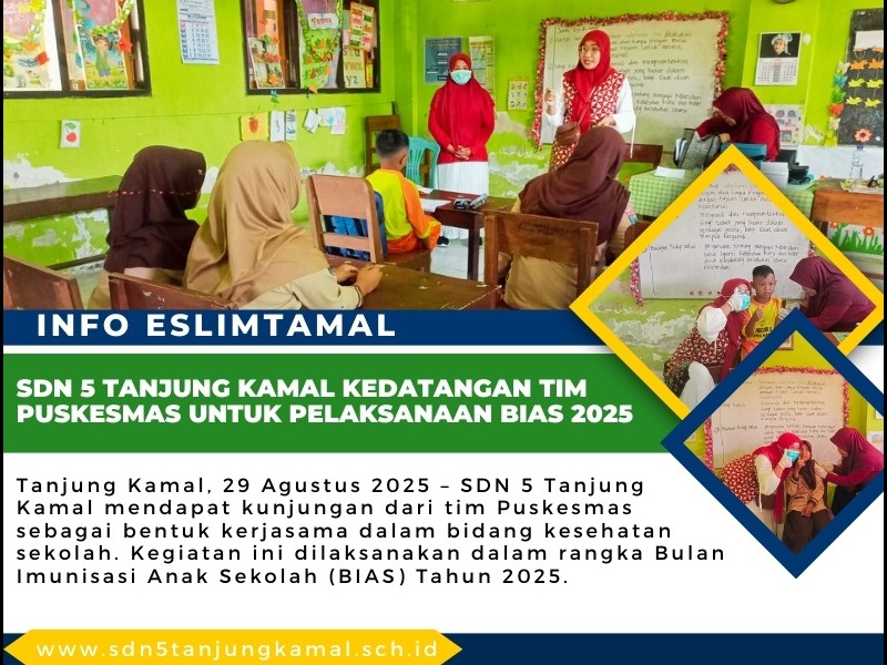 Tanjung Kamal, 29 Agustus 2025 – SDN 5 Tanjung Kamal mendapat kunjungan dari tim Puskesmas