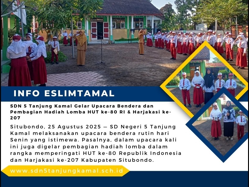 Situbondo, 25 Agustus 2025 — SD Negeri 5 Tanjung Kamal melaksanakan upacara bendera rutin hari Senin yang