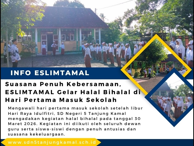 Mengawali hari pertama masuk sekolah setelah libur Hari Raya Idulfitri, SD Negeri 5 Tanjung Kamal mengadakan kegiatan halal bihalal pada tanggal 30 Maret 2026. Kegiatan ini diikuti oleh seluruh dewan guru serta siswa-siswi dengan penuh antusias dan suasana kekeluargaan.